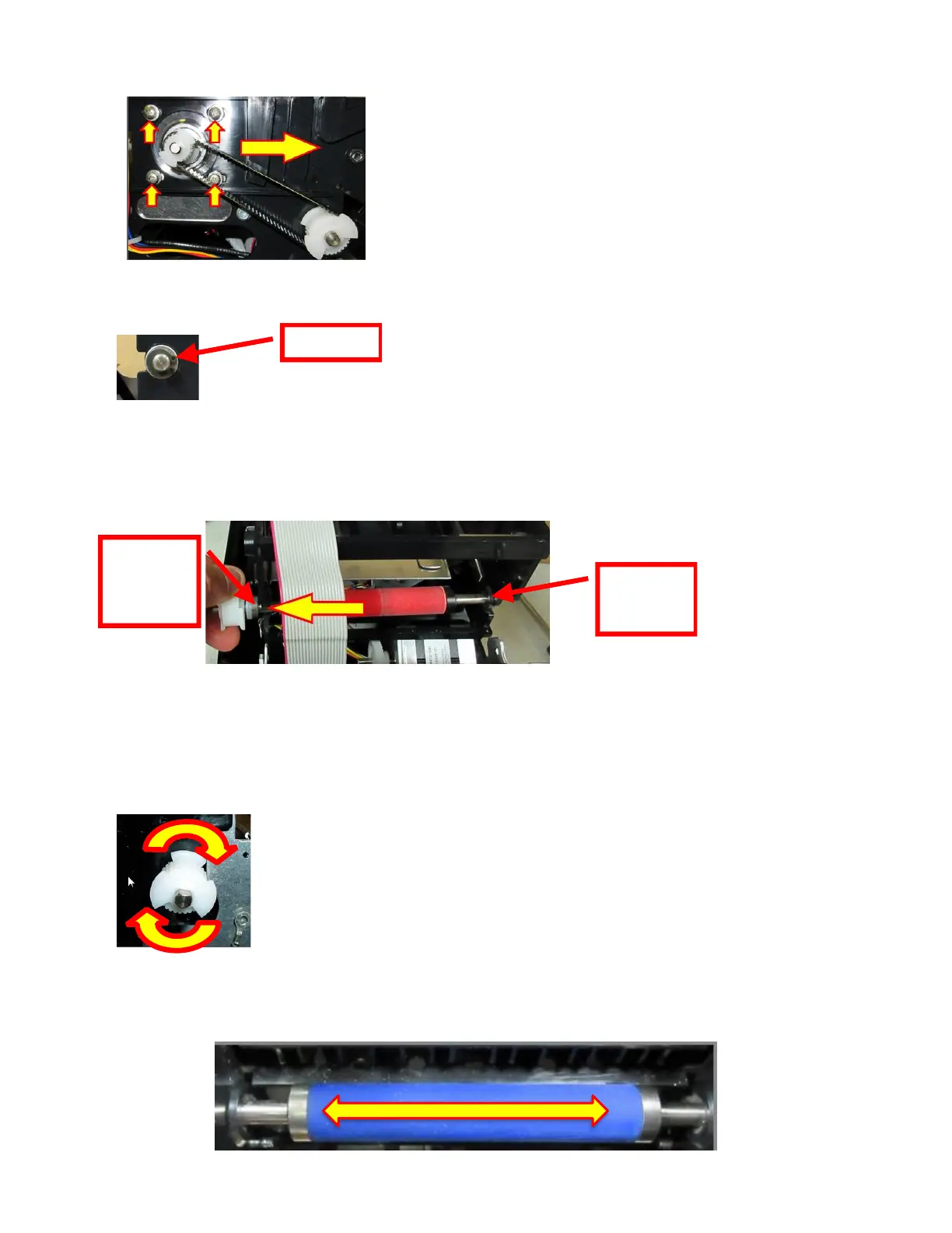 9. The platen may be removed by grabbing onto white pulley and sliding it out towards that side.