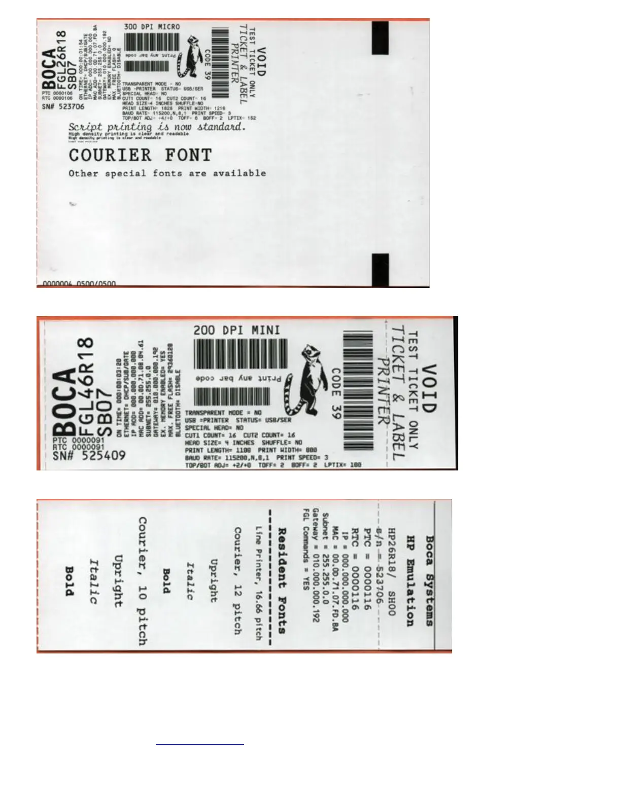 Above sample was printed on a 2” x 5.5” ticket using a 200dpi FGL protocol printer.