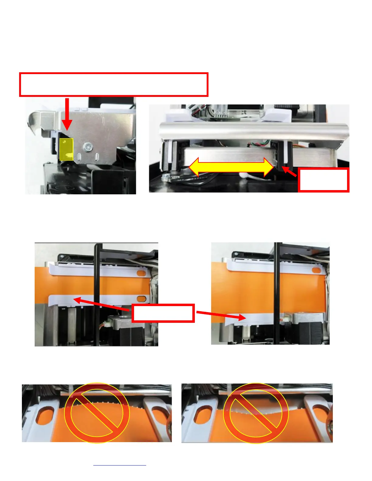 (see photos below). This will lead to feed or ticket jam issues. Ensure the adjustable rail is properly adjusted.