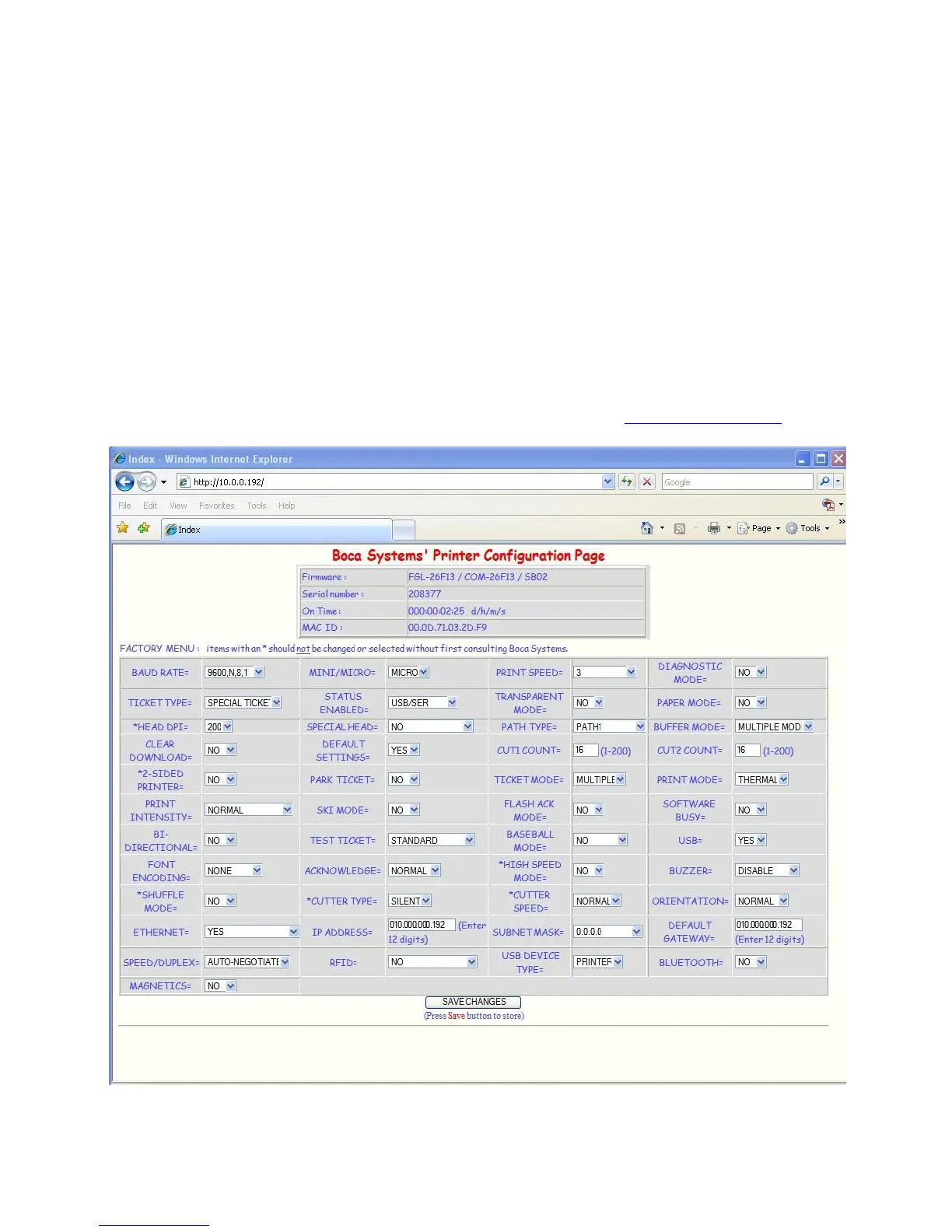 Each Boca Ethernet Printer is assigned a unique MAC address based in part on the printer's serial number. All Boca