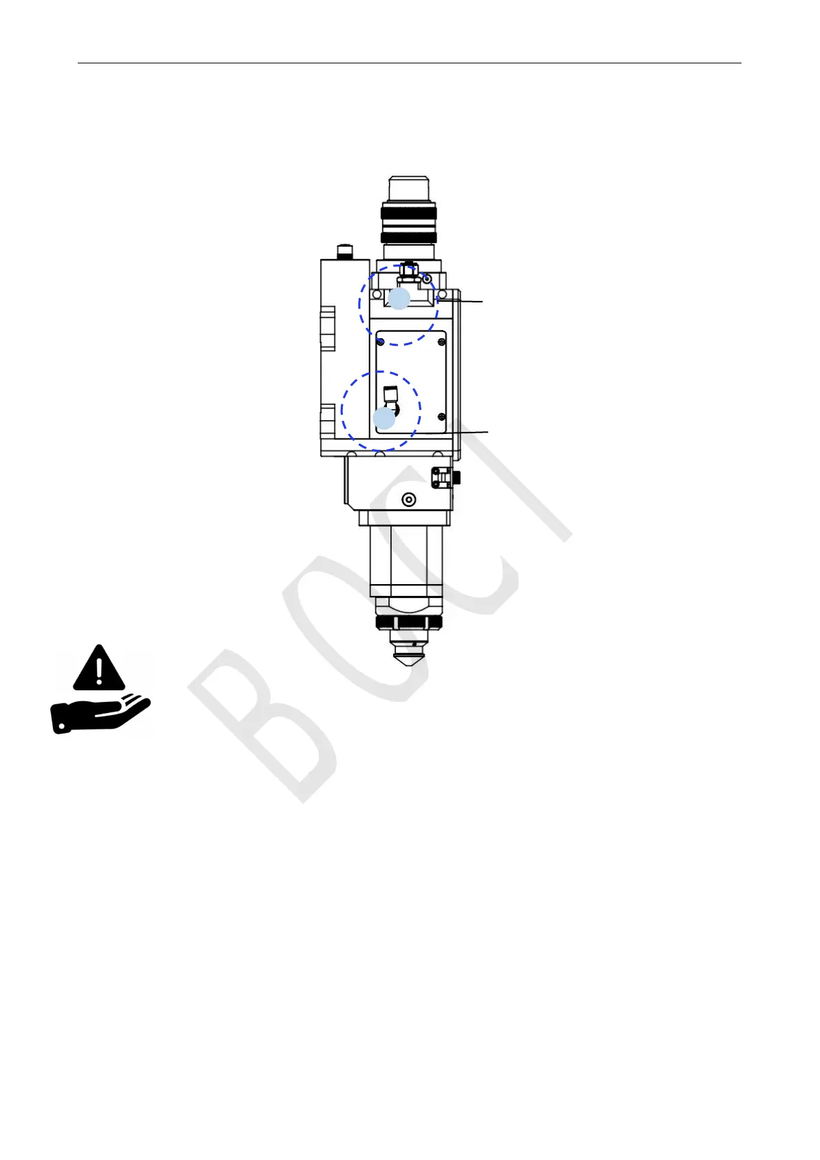 Installation connection: cutting gas 1, nozzle cooling gas 2
