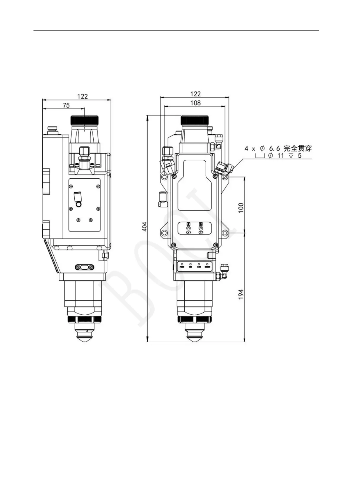 1.1 Cutting head installation size