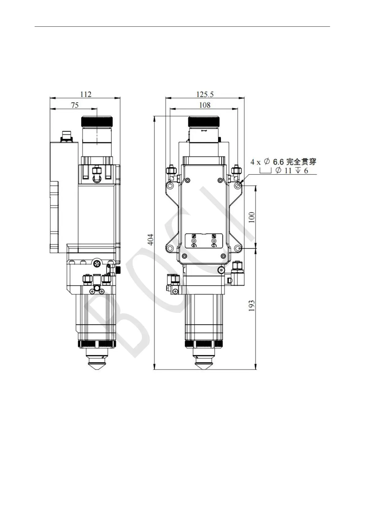 BOCI BLT421S - Appendix B - Mechanical Dimensions; Cutting Head Installation Size