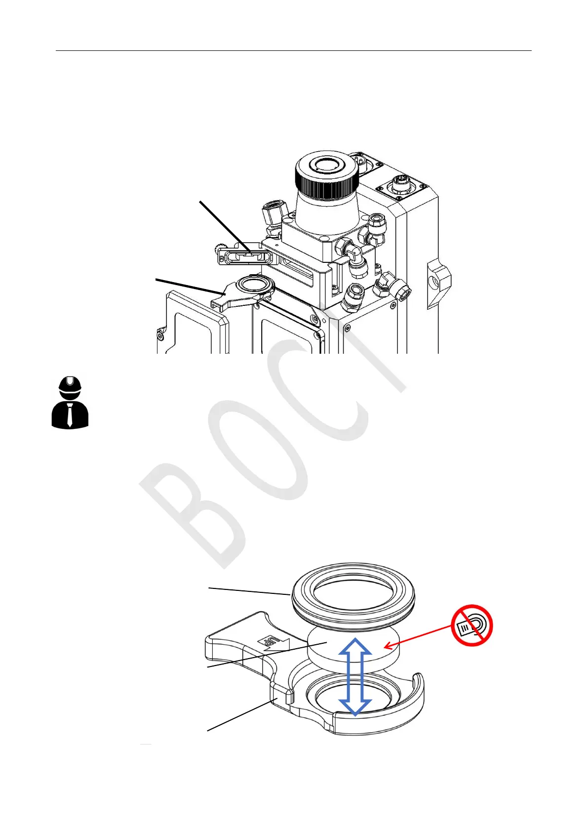 7. Insert the upper protective mirror drawer with lens into the cutting head.