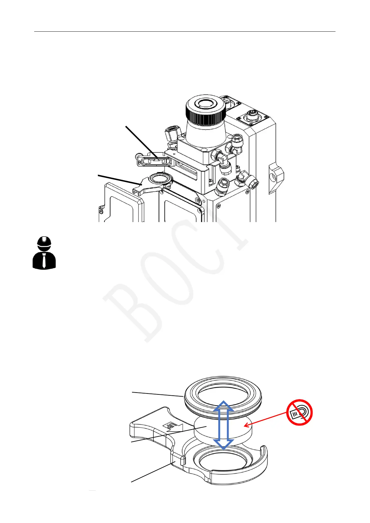 7. Insert the upper protective mirror drawer with lens into the cutting head.