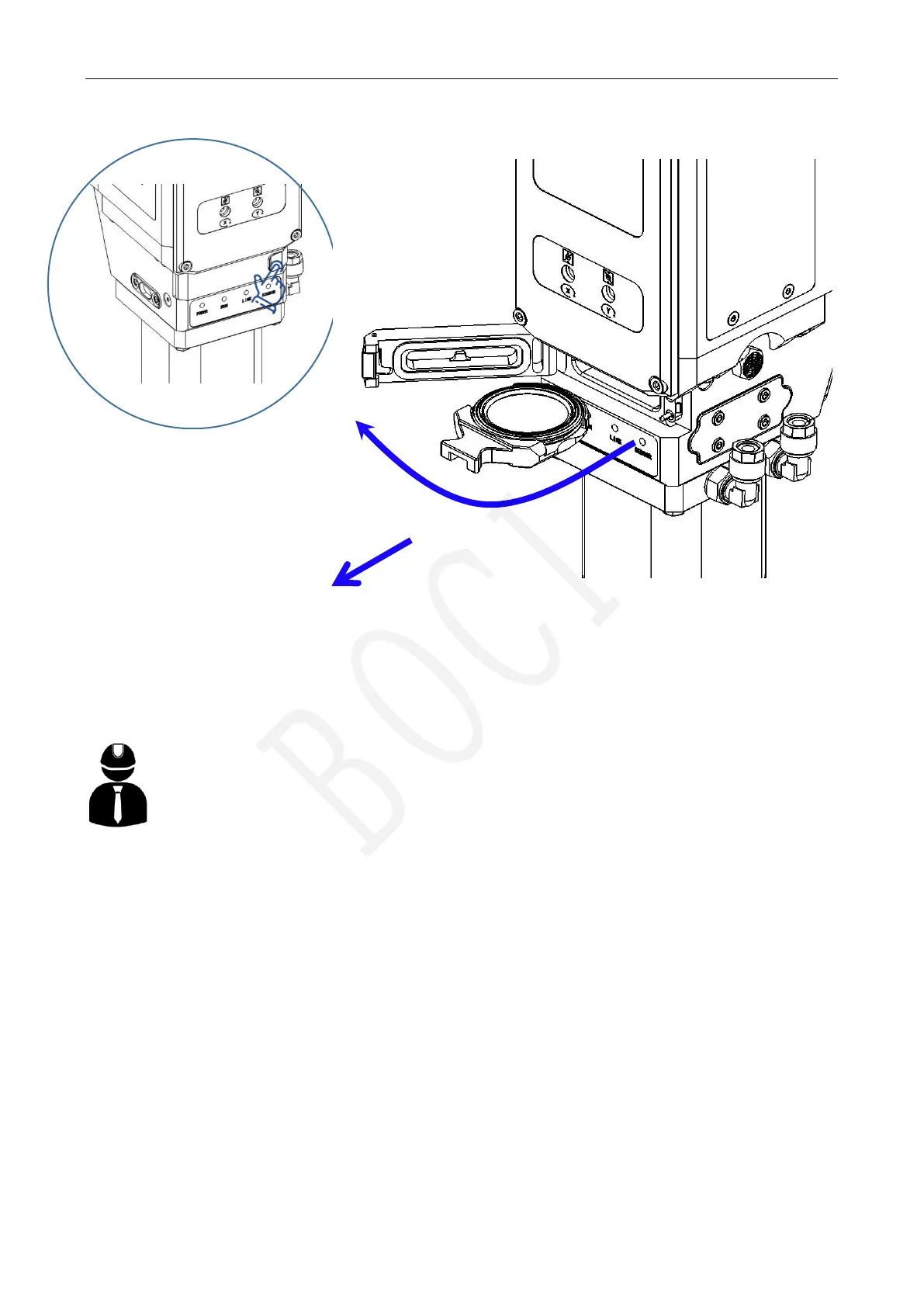 6. Open the protective door of the lower protective mirror drawer;