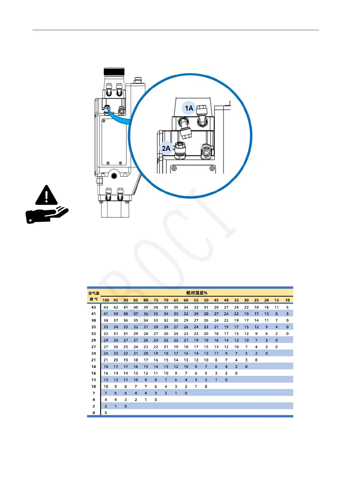 Please refer to the dew point table to set the cooling water temperature to prevent condensation on the optical