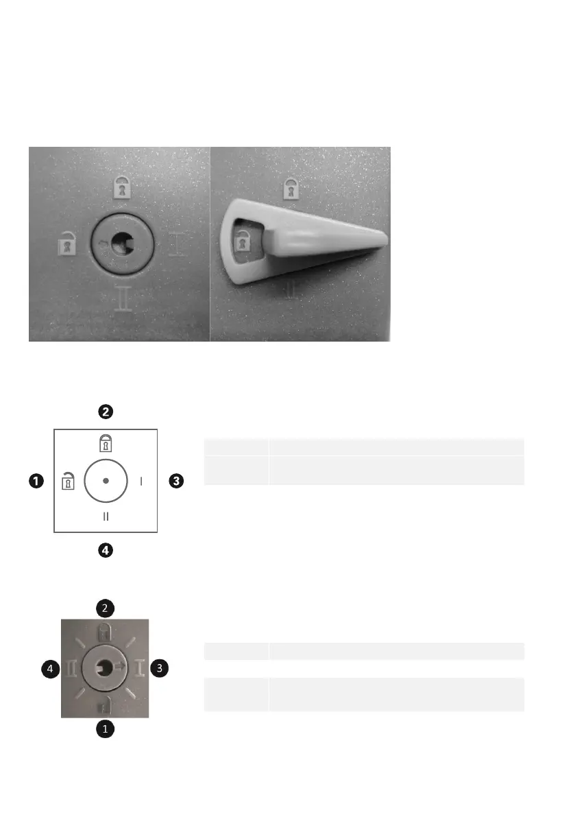 the key in the keylock on the backside and turn the lock function on or off with a corre-