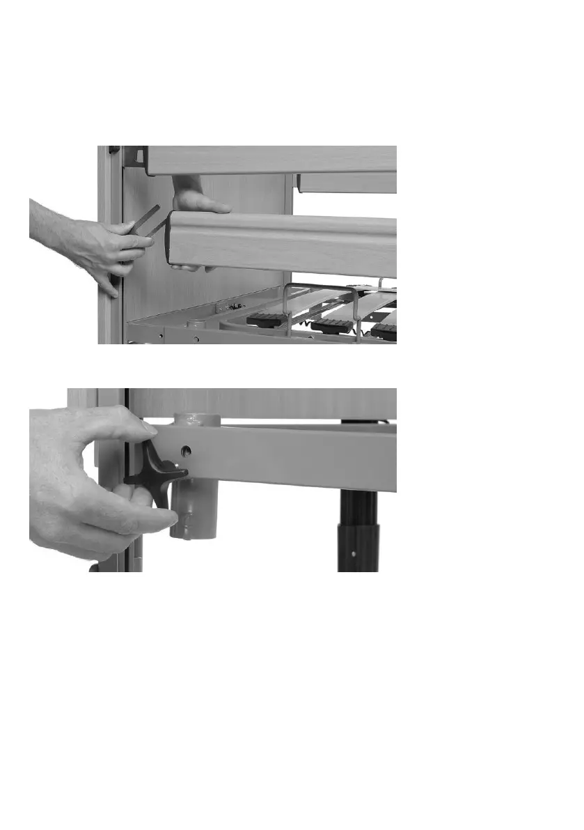 5. Then hook the wooden or steel side rails into the pre-assembled metal guides and ar-