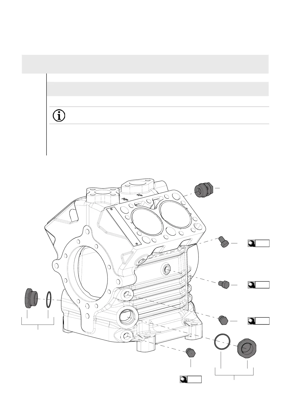 Tools: Spanner SW 13, 14, 30 or 36. For the decompression valve: Bock special tool item No. 09524 (up to A015), socket