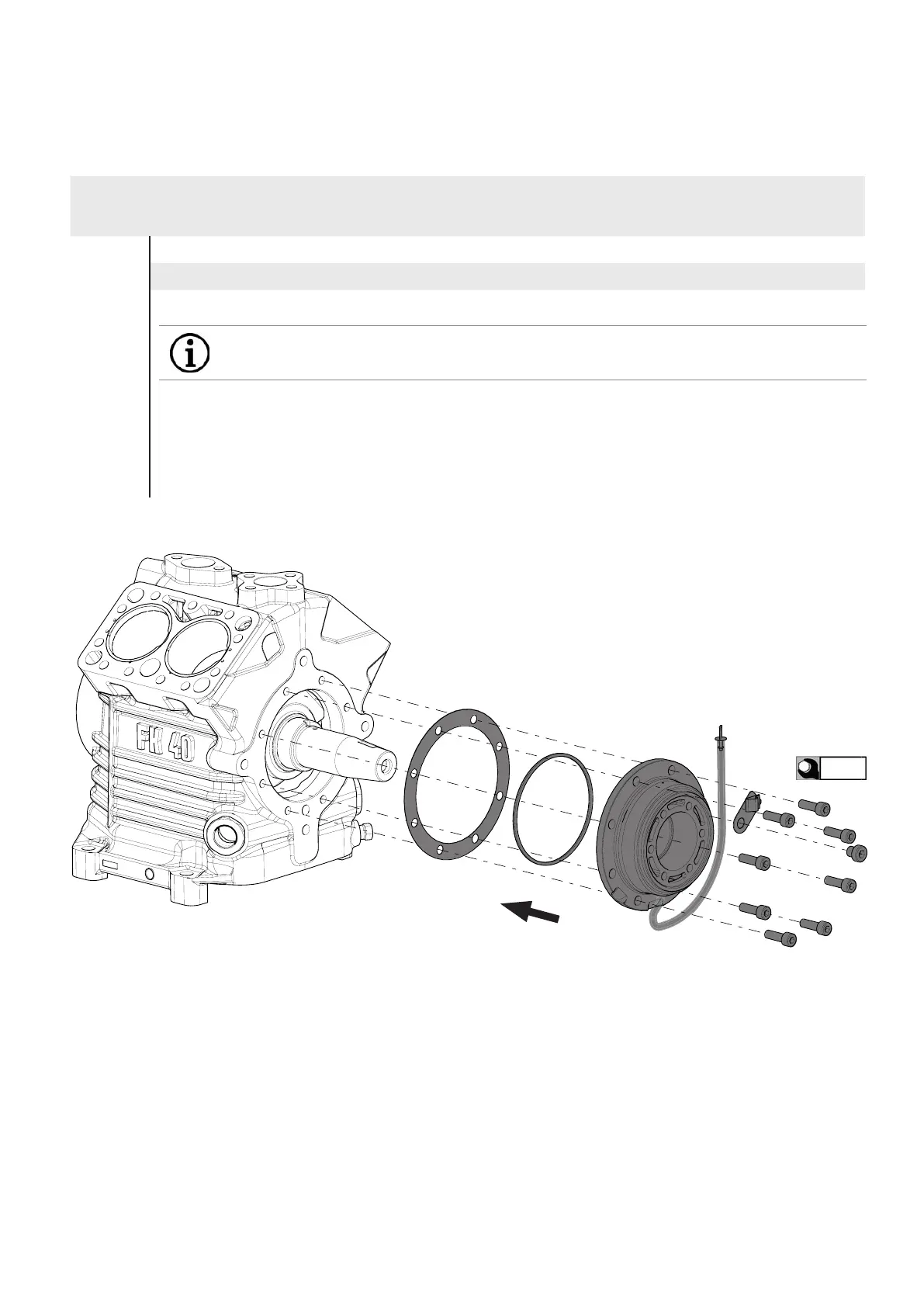 - Install the front bearing ange with gasket to the body so that the hole for the clamping ring
