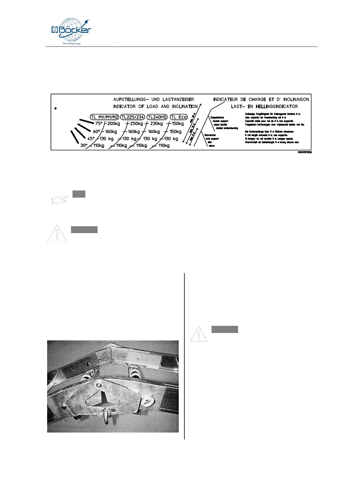 Hint! See to it that the load indicator can always move freely so that the exact inclination can be