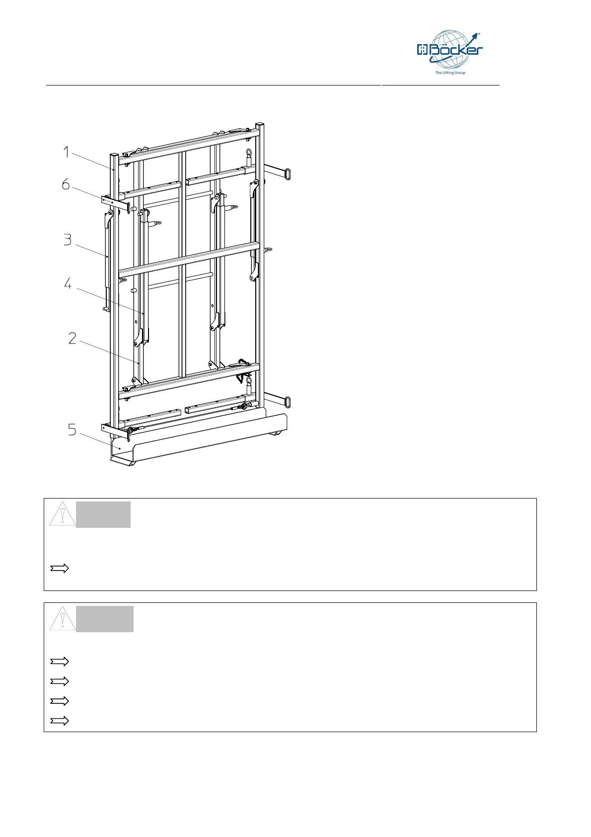 If the supports (3; 4) are not secured by the bolted connection or if the snap pins are not engaged, the loaded