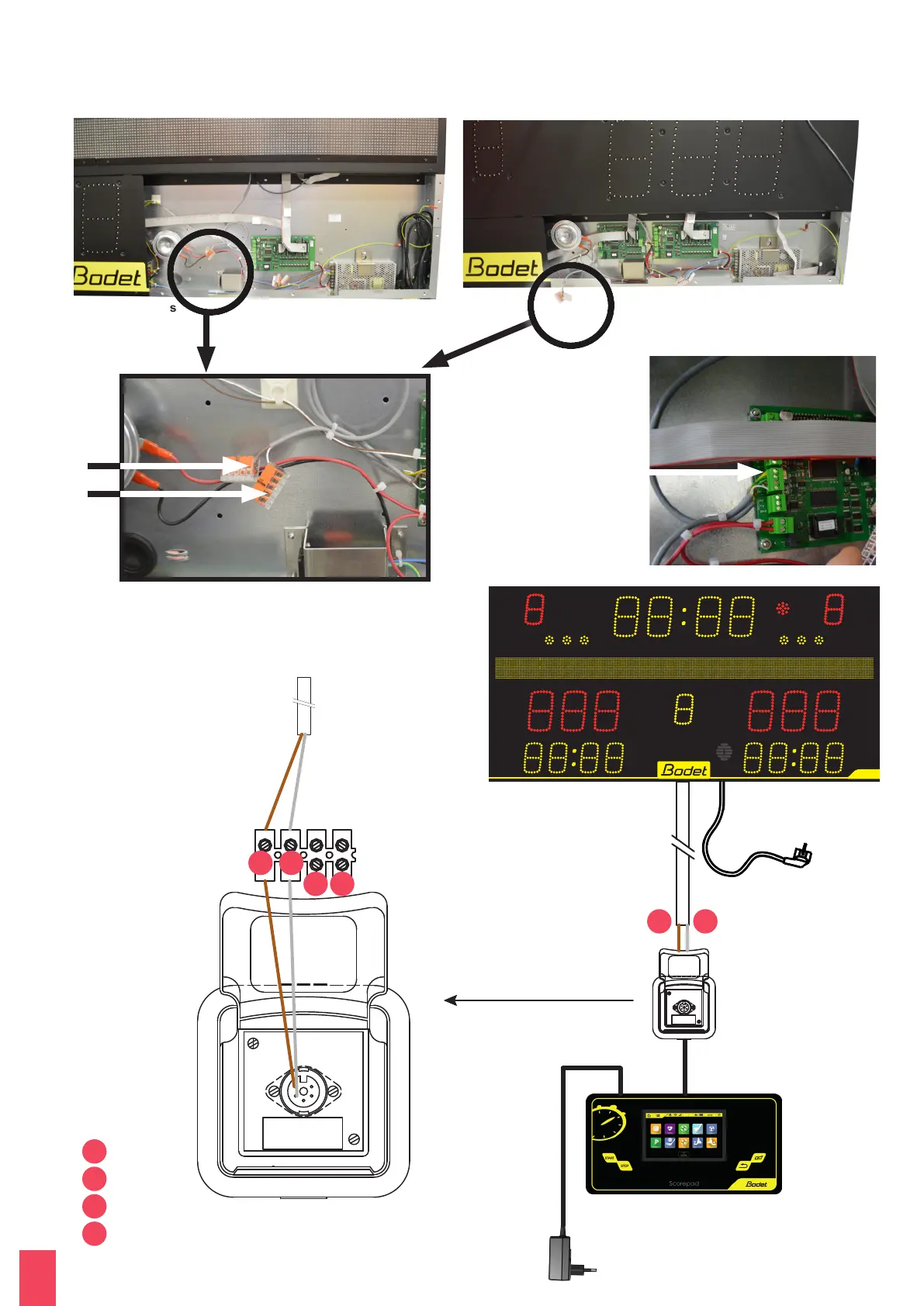 Connect the 2 wires (brown and white) on the lever connectors, for the keyboard communication coming from the