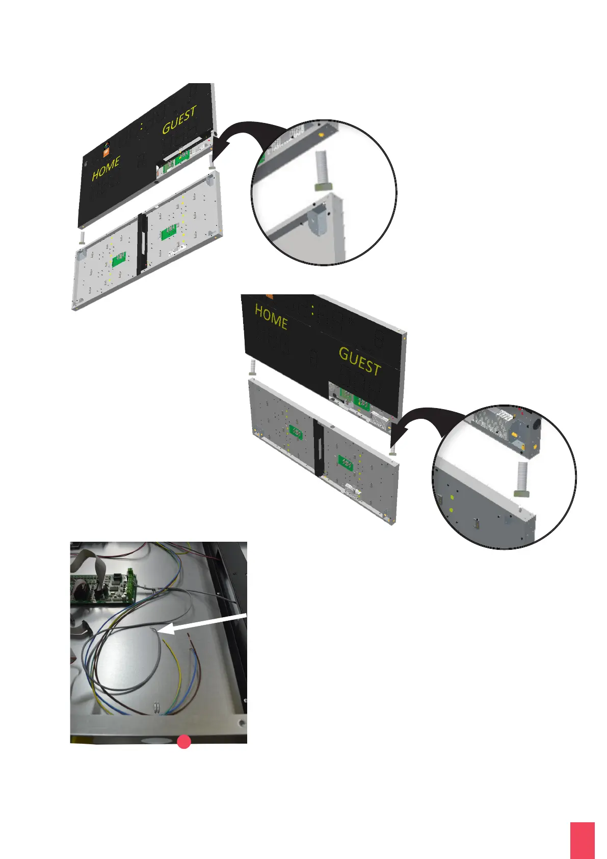 andfeed the power and communication cables of the additional module (A) to the main scoreboard :