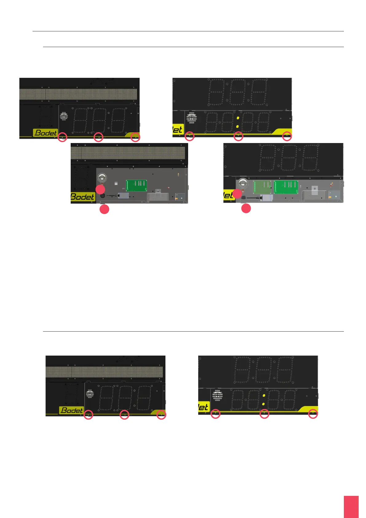 1) Remove the 3 lower screws («Guest score» hatch or «Guest penalties» hatch according to the scoreboard