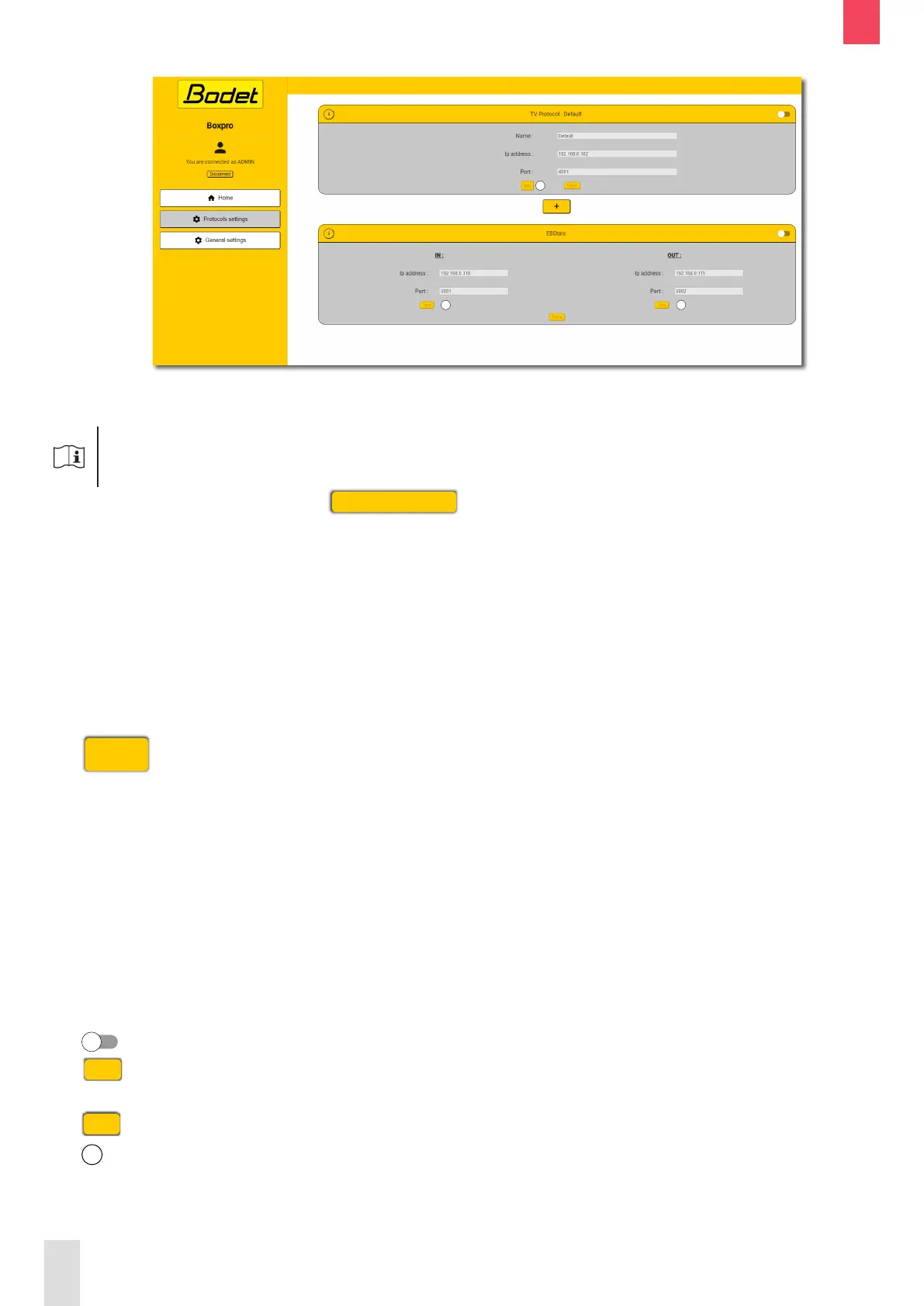 The protocols settings page allows activating or deactivating the protocols as well as lling in the