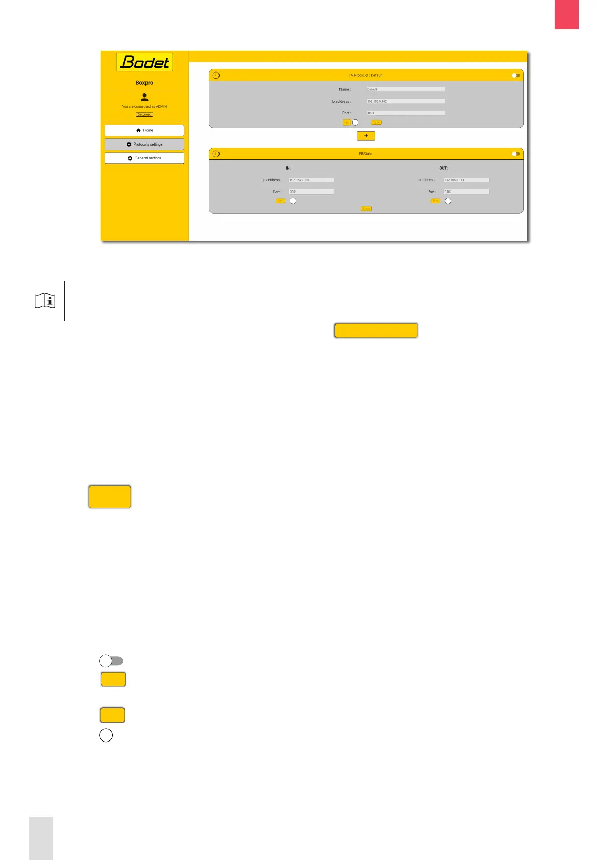 La page «Protocols settings» permet d’activer ou de désactiver les protocoles et de renseigner les