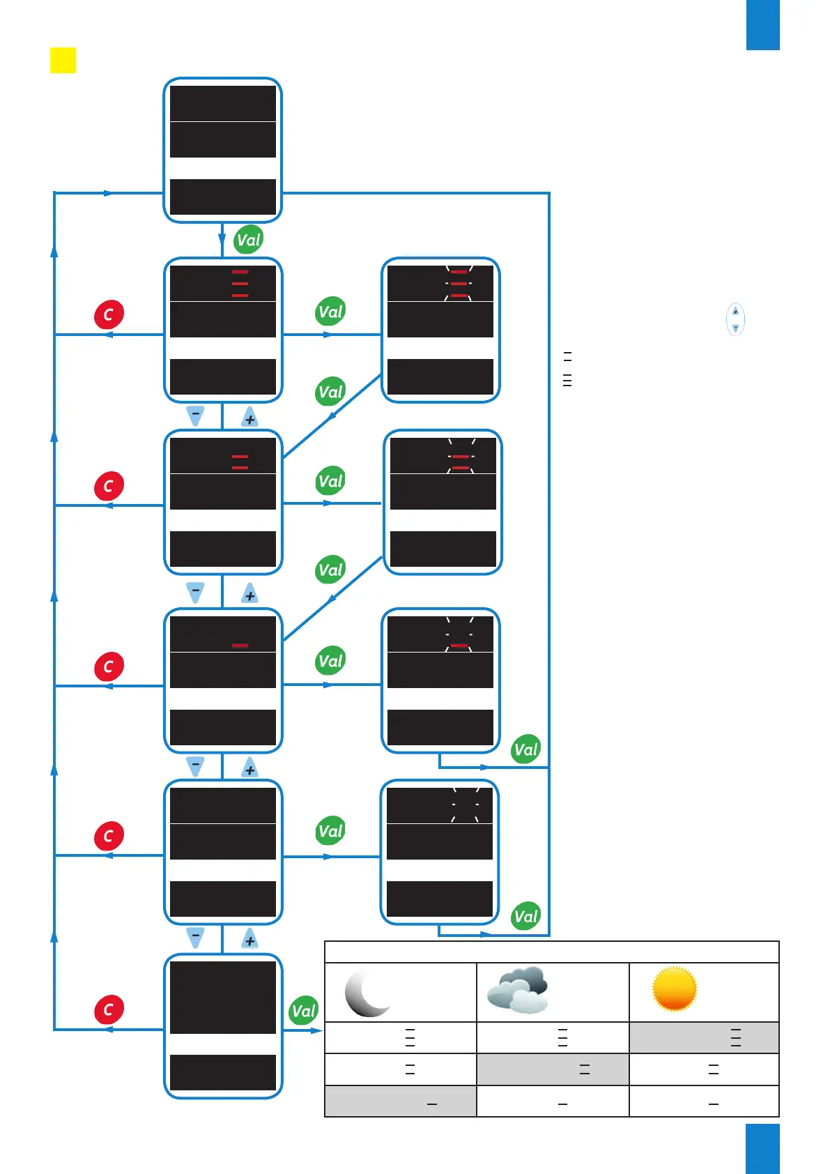 Validation of the default settings then return to the starting display