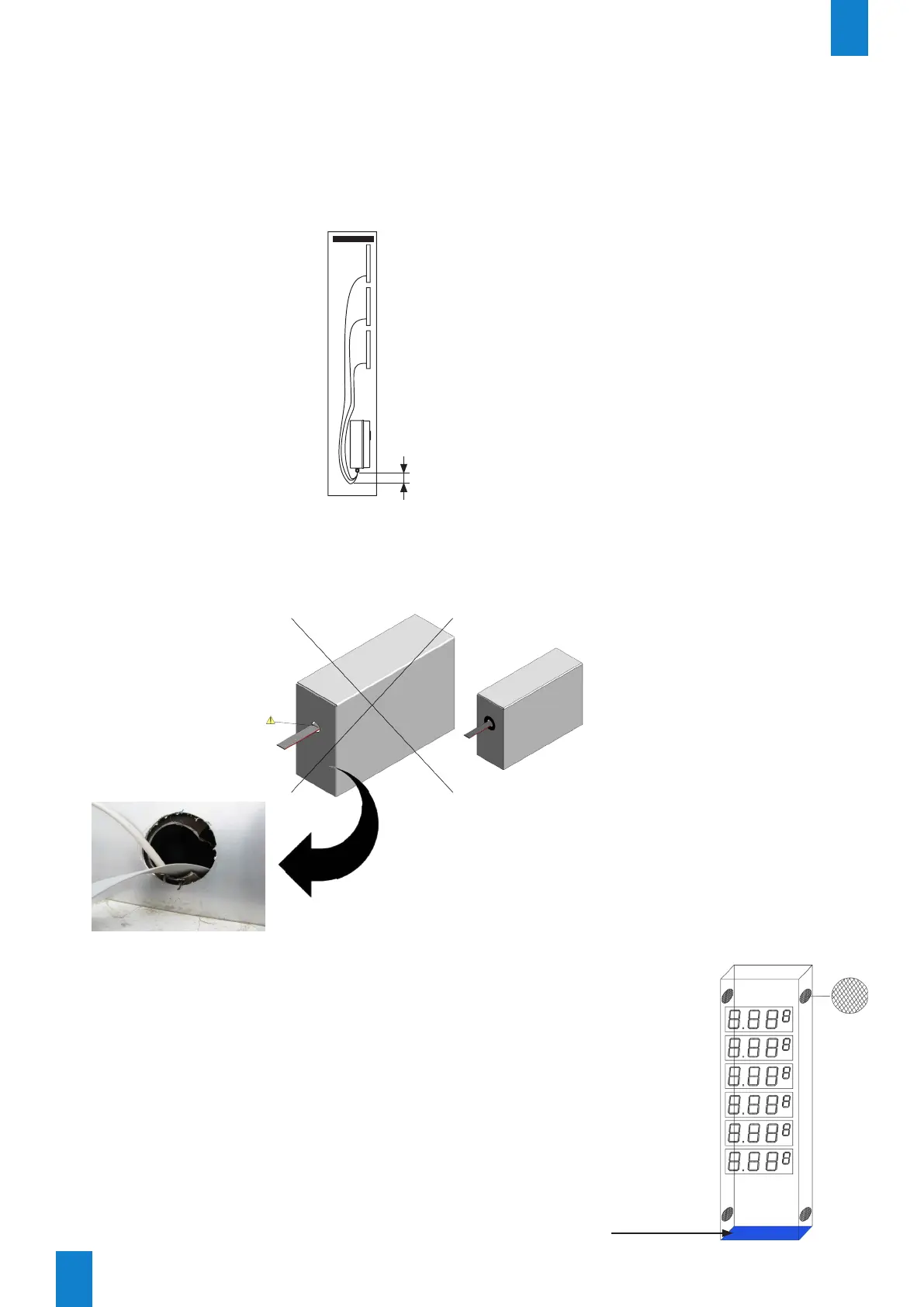• Le passage pour les câbles doit être dirigé vers le bas (pour éviter l’infiltration de l’humidité à l’intérieur
