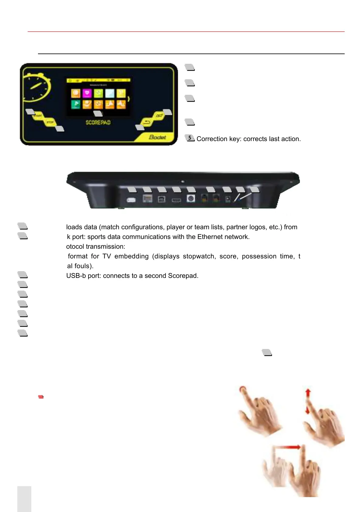 USB-a port: loads data (match congurations, player or team lists, partner logos, etc.) from a USB drive.