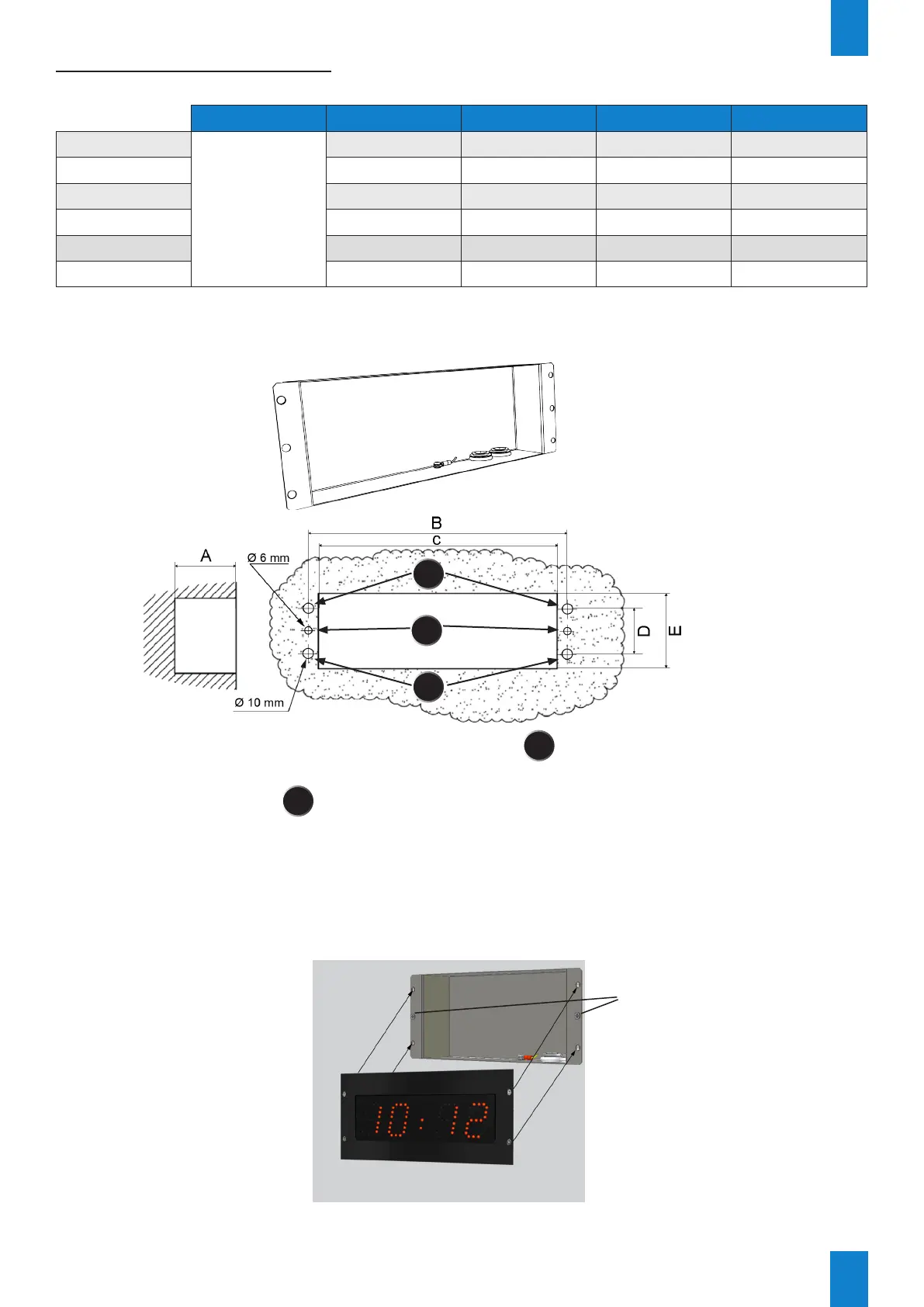 According to the model of the clock make the cut-out following le dimensions listed in table below