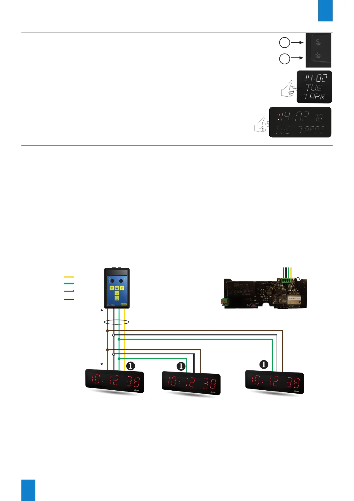 terminals together using a 2-core cable (twin telephone cable). The first clock remains connected to