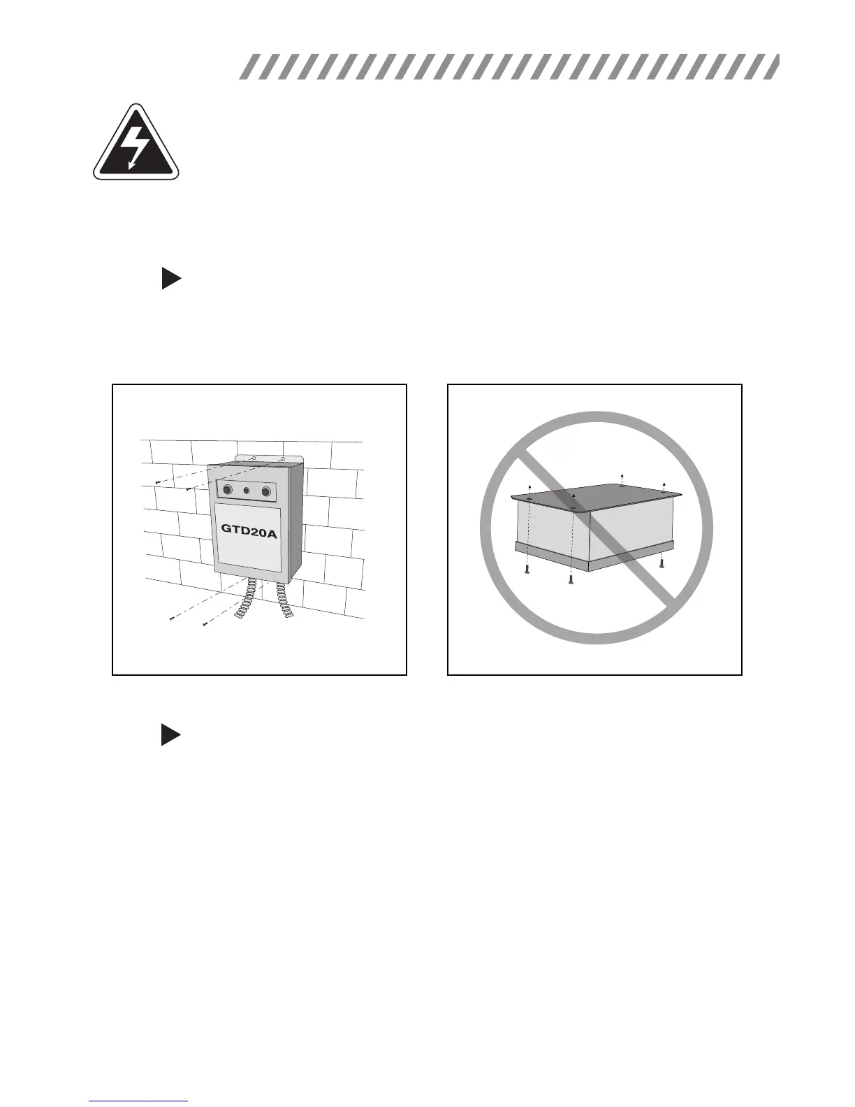 > Mount GTD20A in a convenient location using appropriate hardware (not supplied). See Illustration 1 for