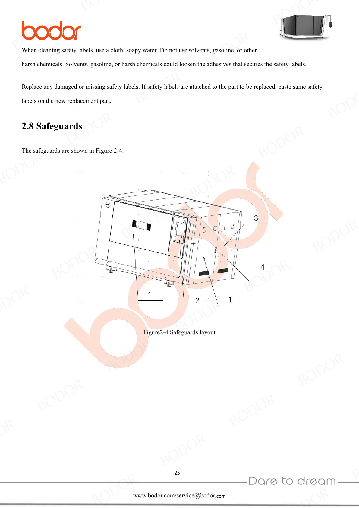 harsh chemicals. Solvents, gasoline, or harsh chemicals could loosen the adhesives that secures the safety labels.
