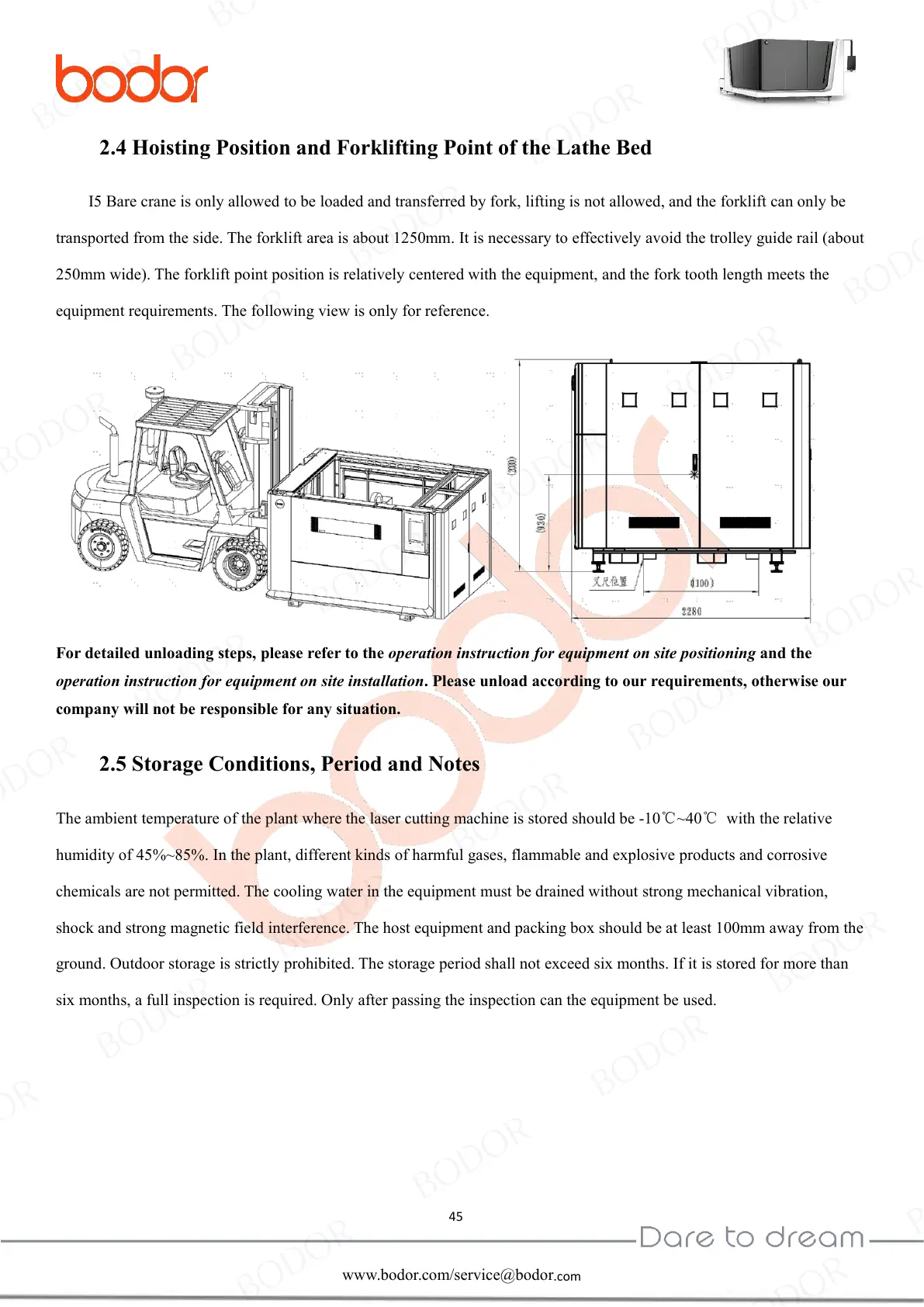 transported from the side. The forklift area is about 1250mm. It is necessary to effectively avoid the trolley guide rail (about