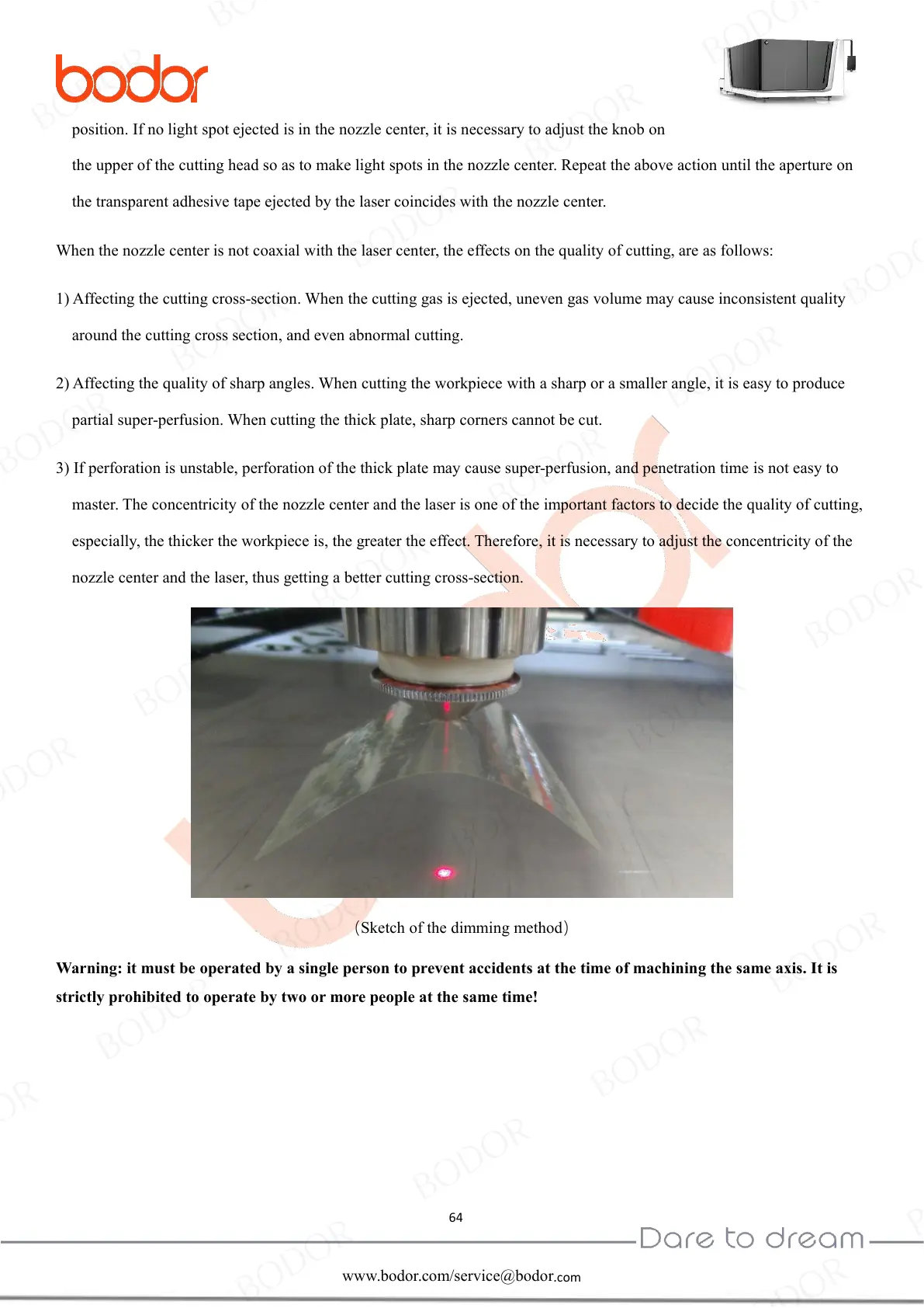 master. The concentricity of the nozzle center and the laser is one of the important factors to decide the quality of cutting,