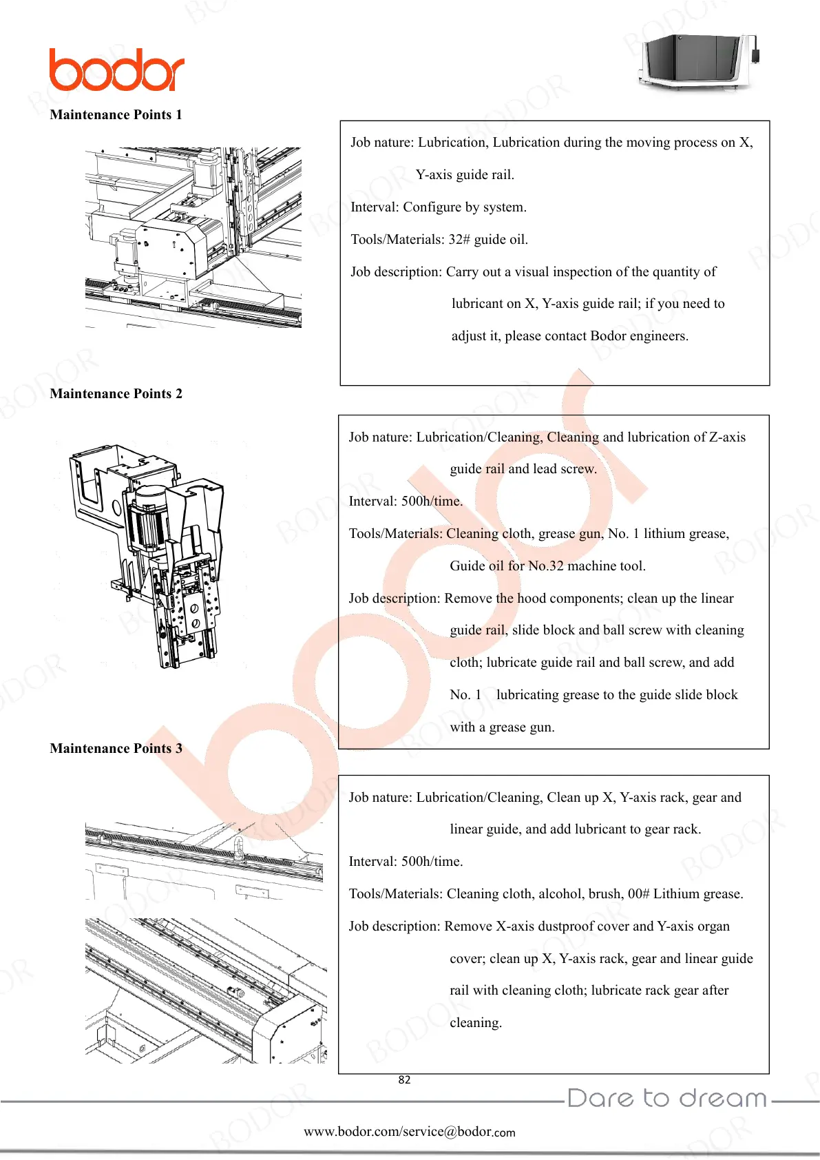 Job nature: Lubrication, Lubrication during the moving process on X,