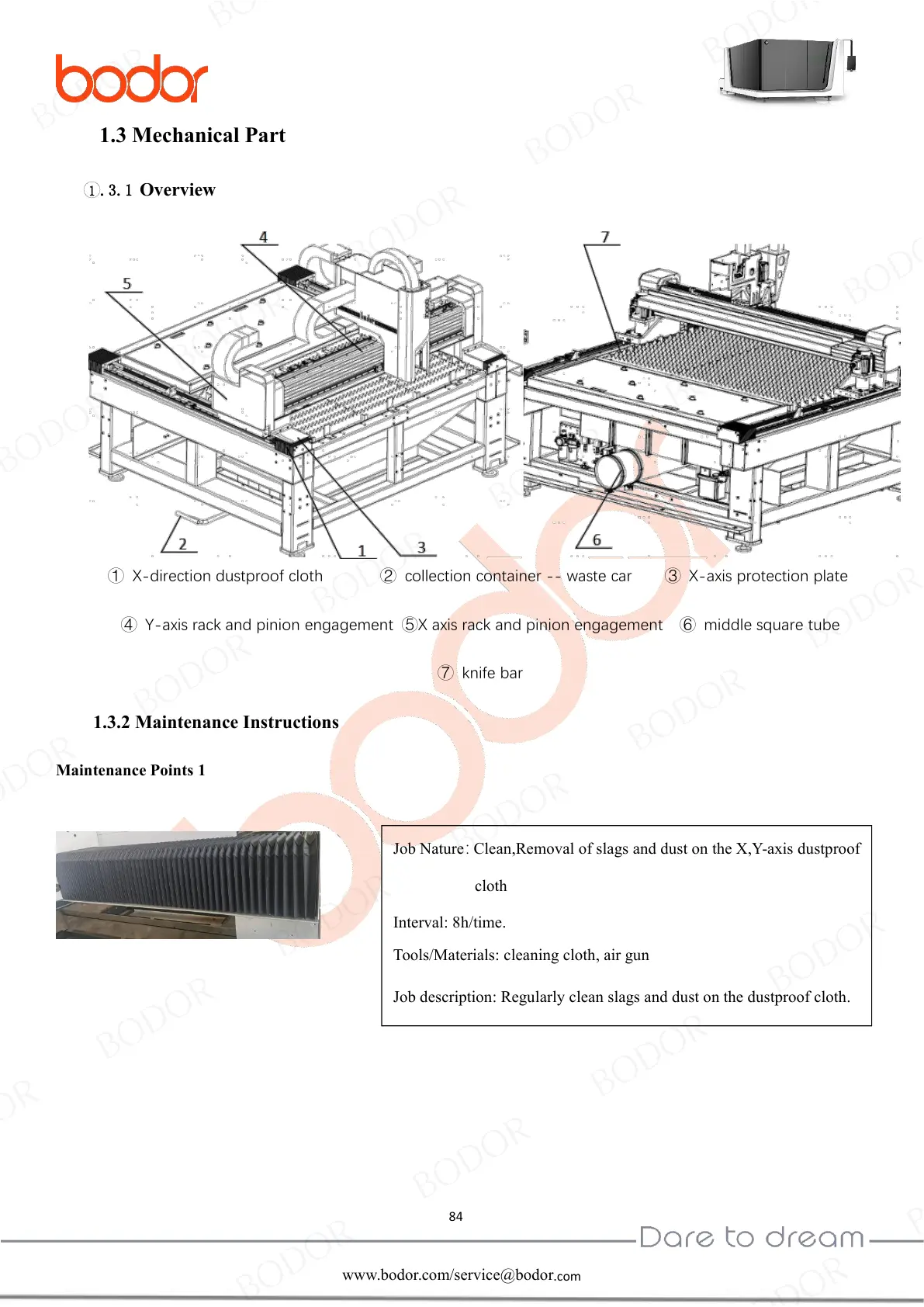 Job description: Regularly clean slags and dust on the dustproof cloth.