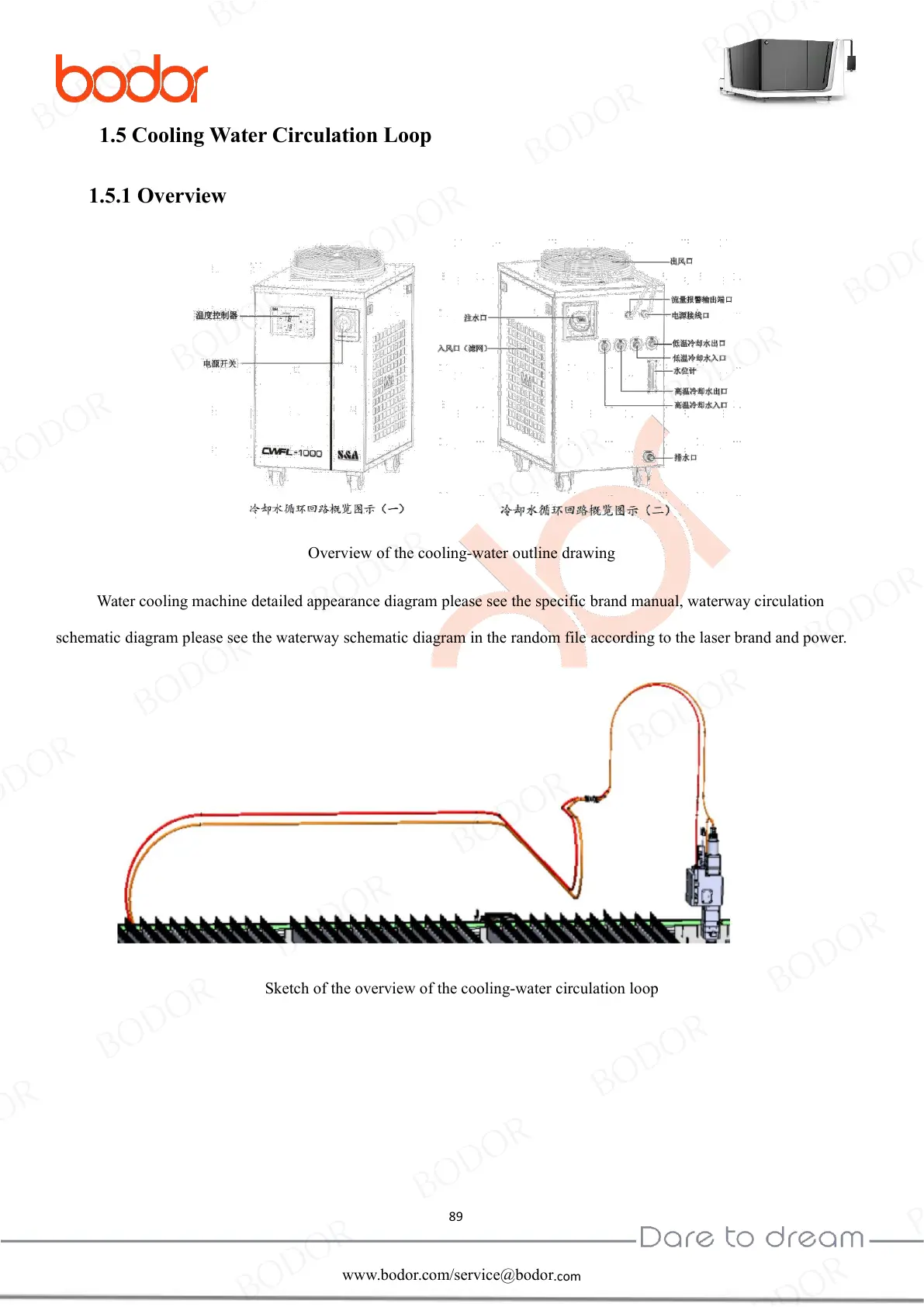 Water cooling machine detailed appearance diagram please see the specific brand manual, waterway circulation
