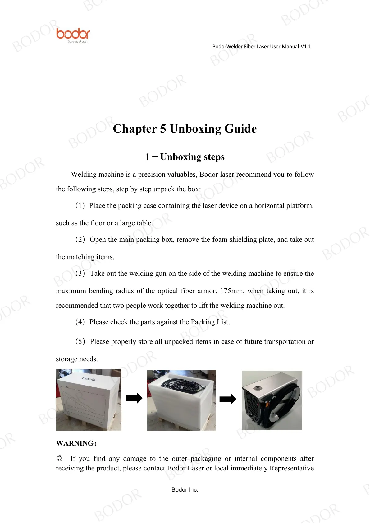 receiving the product, please contact Bodor Laser or local immediately Representative