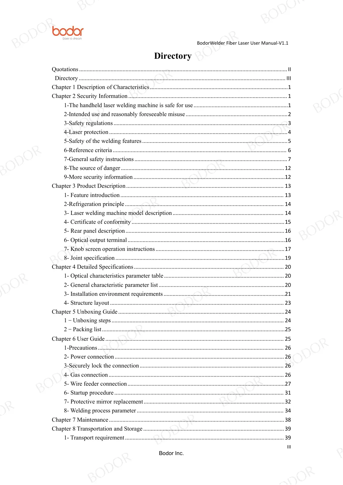 BodorWelder Fiber Laser User Manual-V1.1