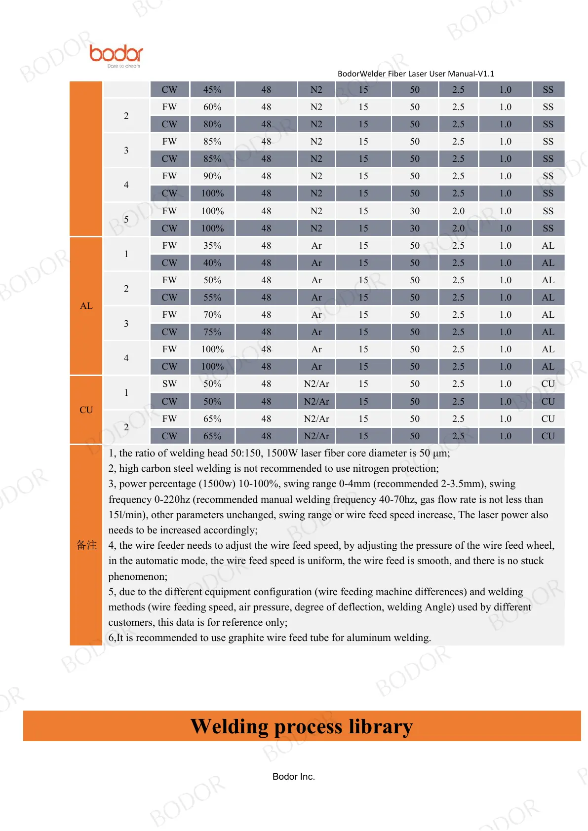 1, the ratio of welding head 50:150, 1500W laser fiber core diameter is 50 μm;