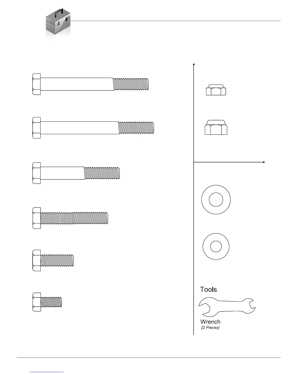 Body Champ BCB 810 - Hardware and Tool List; Bolts Identification; Nuts Identification; Washers Identification