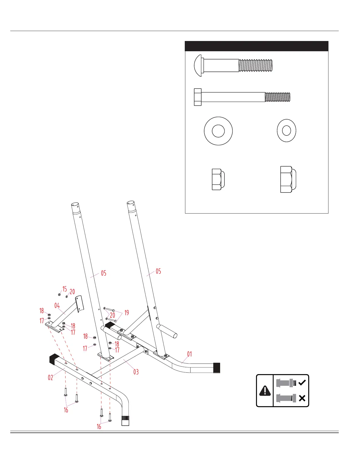 the Upright (#05) and Base Frame (Right) (#02). Insert two