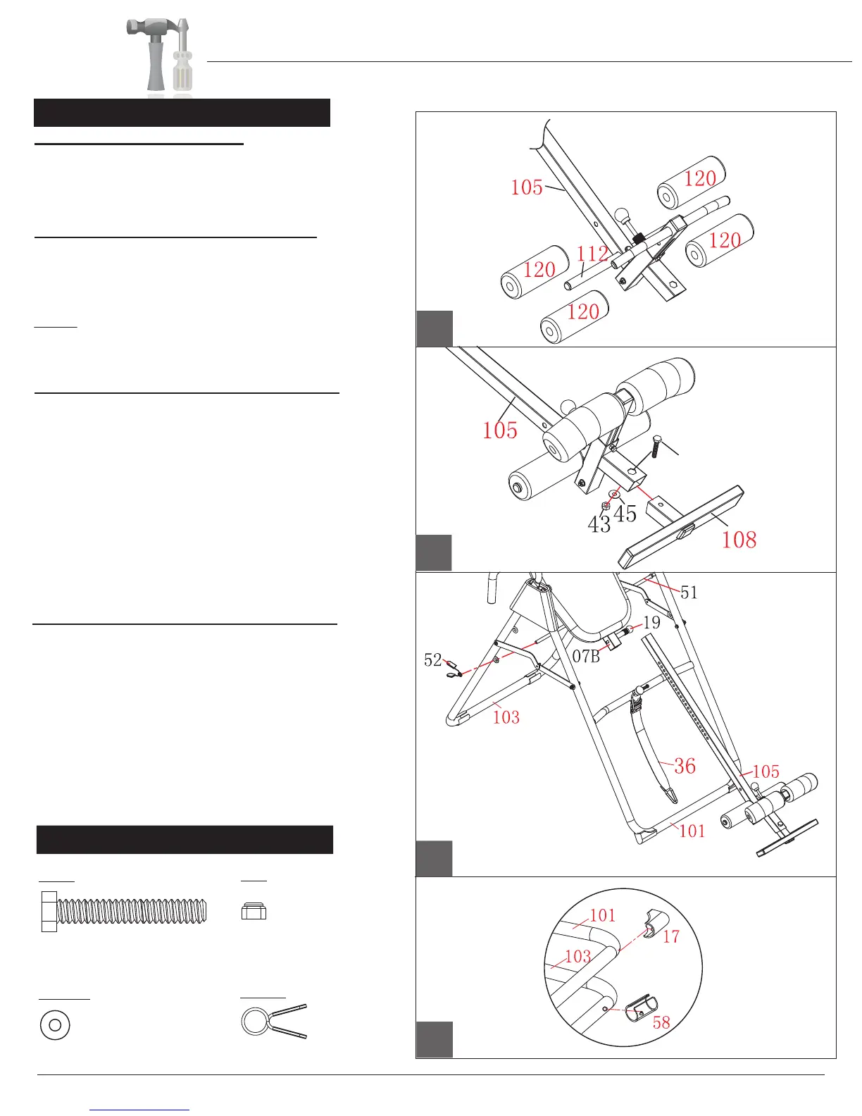 Front Leg Tube (#101) and Rear Base (#103) before using
