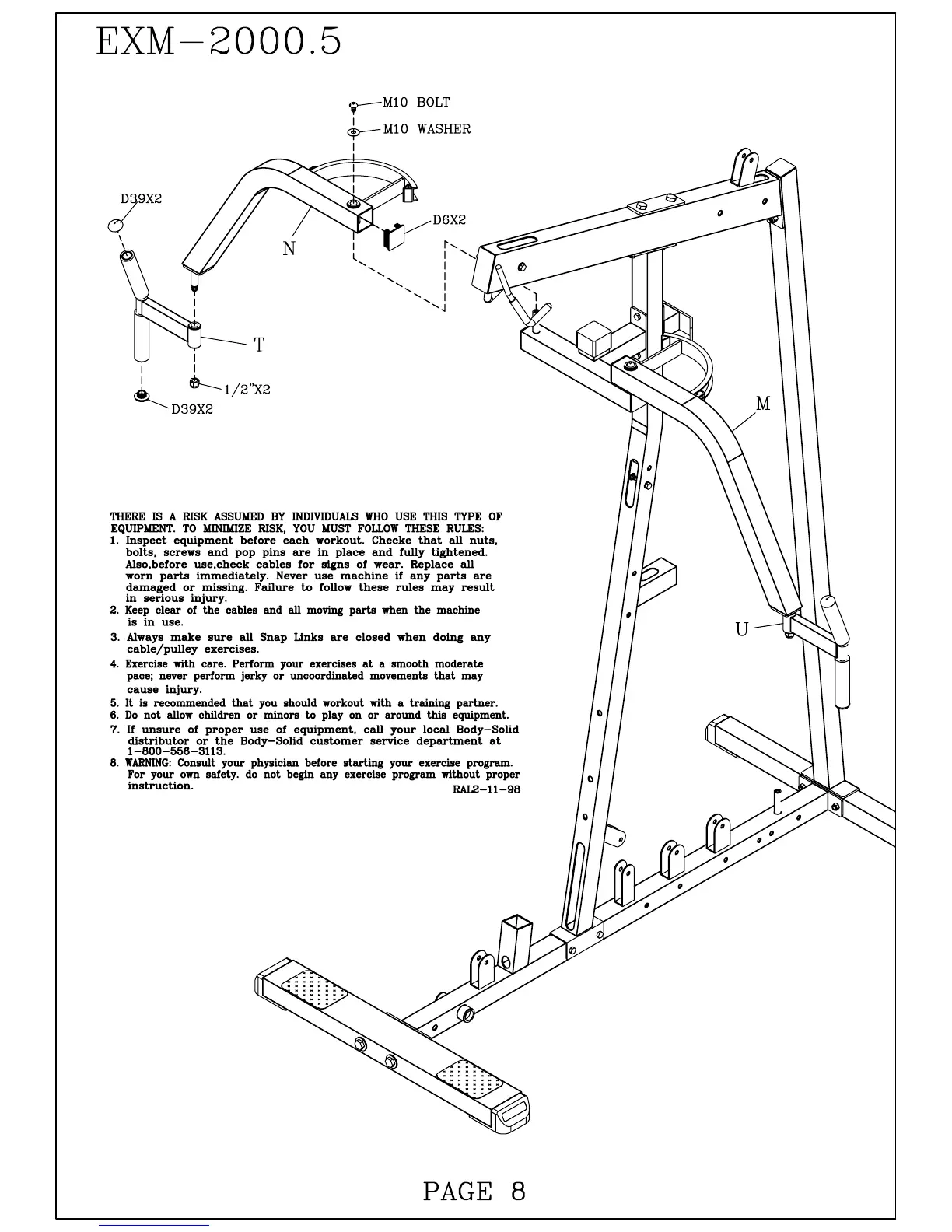 Body Solid EXM-2000.5 - Safety Warnings and Guidelines; Equipment Inspection and Maintenance; Safe Exercise Practices; Contact and Medical Advice