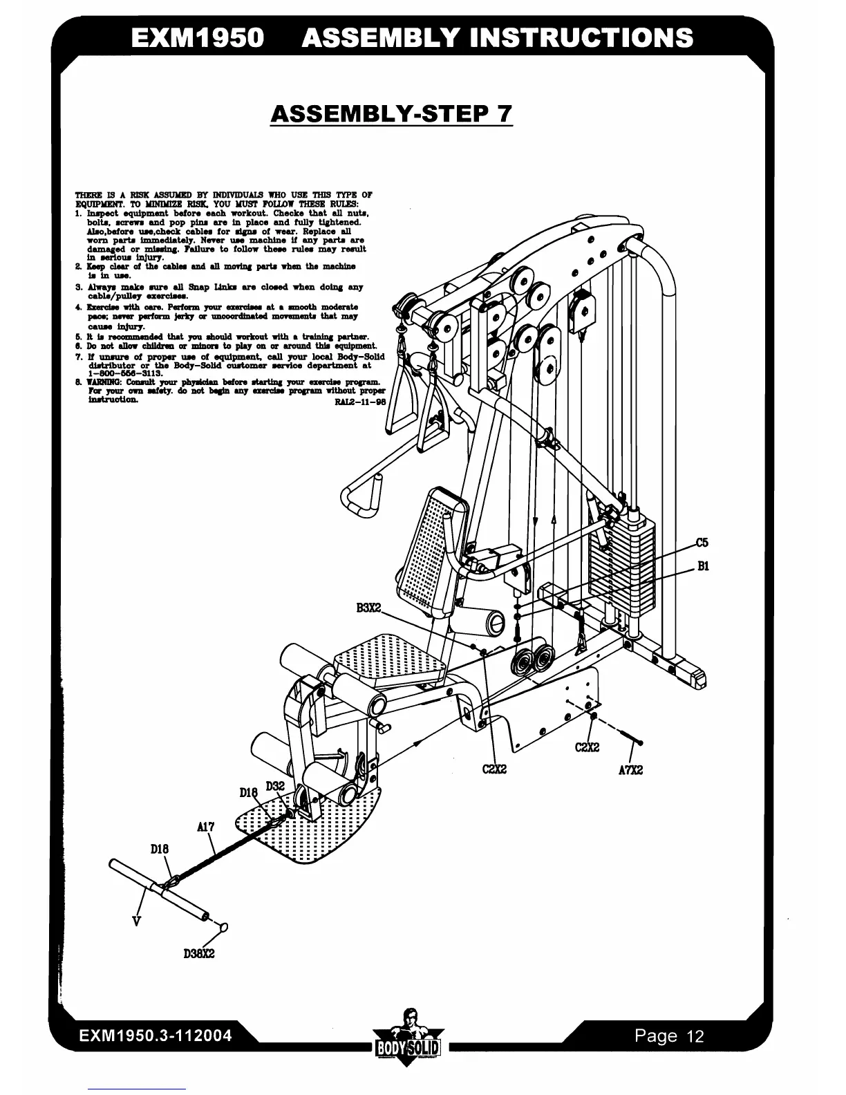 Body Solid EXM1950 - Assembly-Step 7 and Safety