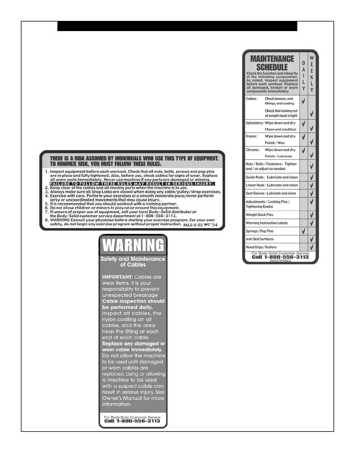 sure all warning labels are legible and intact. Replacement