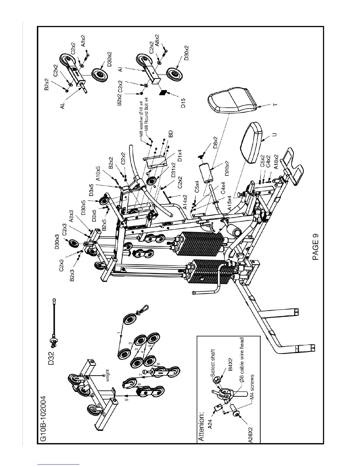 Body Solid G10B - Assembly Diagram: Weight Stack and Seat Assembly