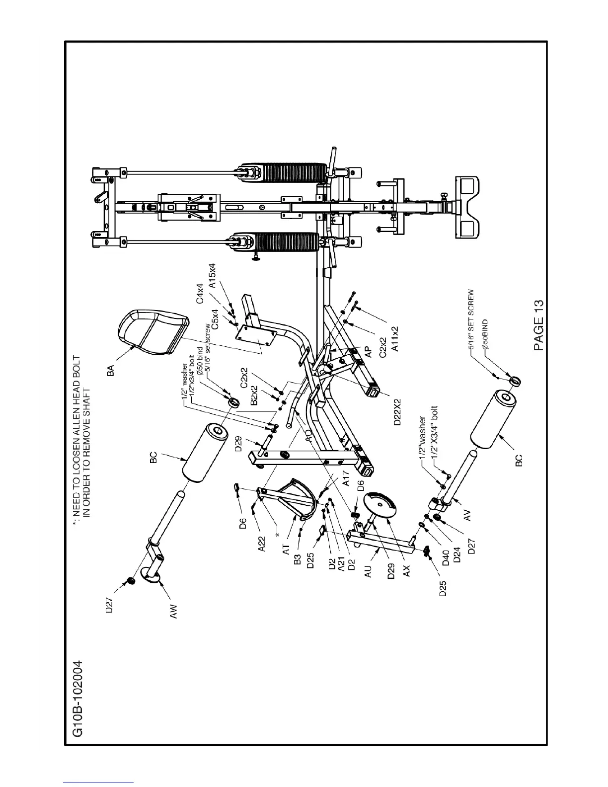 Body Solid G10B - Assembly Diagram: Component Assembly and Notes