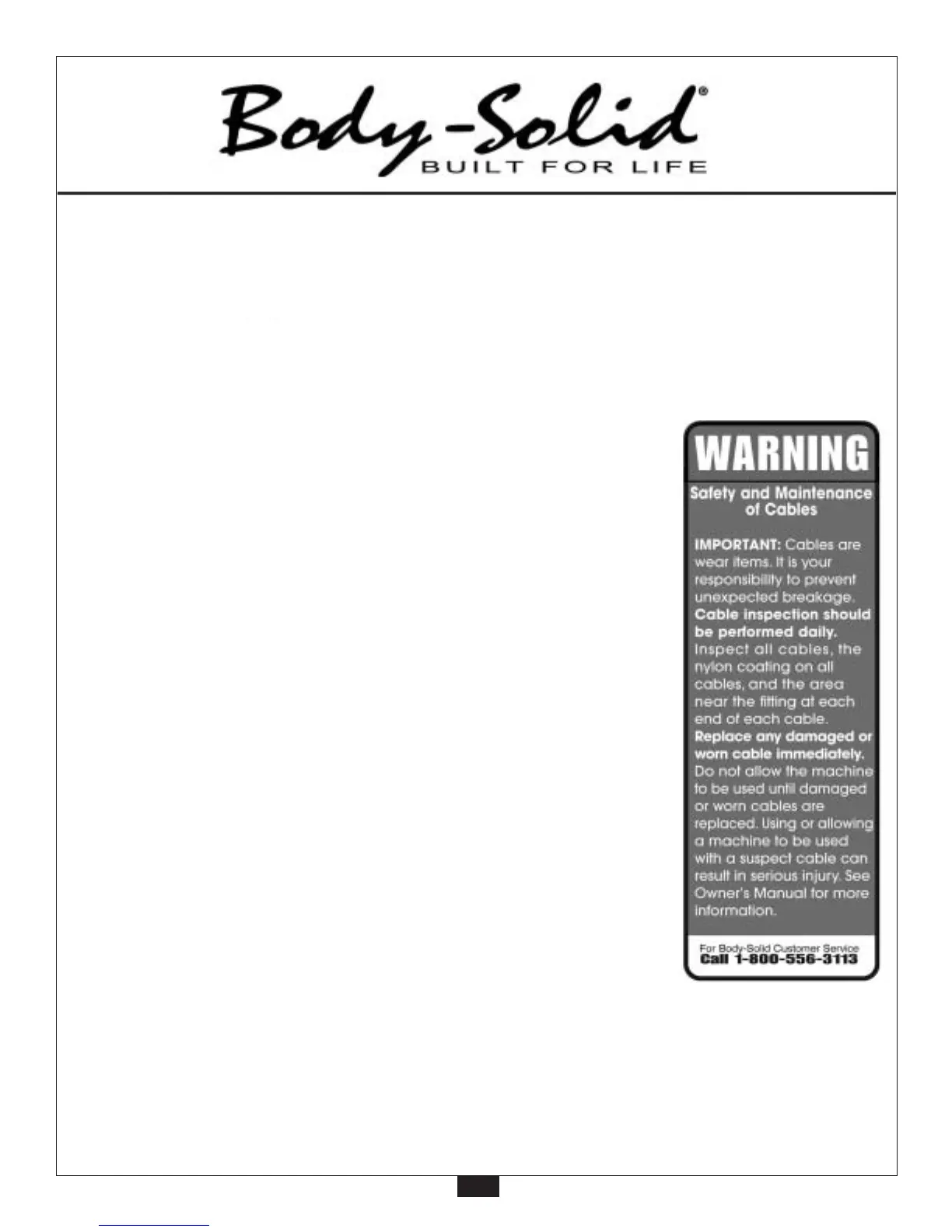 owner’s responsibility to thoroughly, carefully and daily inspect all cables on this