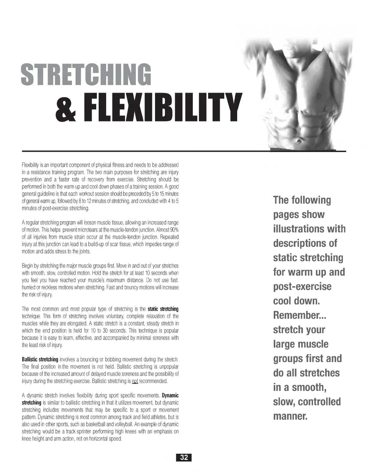 injury during the stretching exercise. B allistic stretching is not recom m ended.