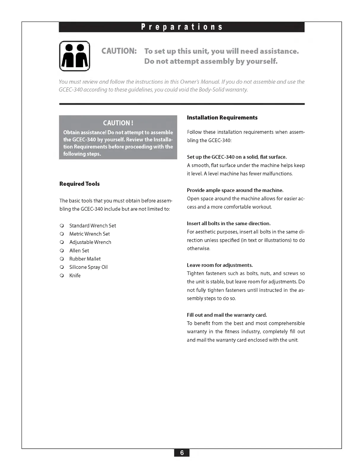 GCEC-340 according to these guidelines, you could void the Body-Solid warranty.