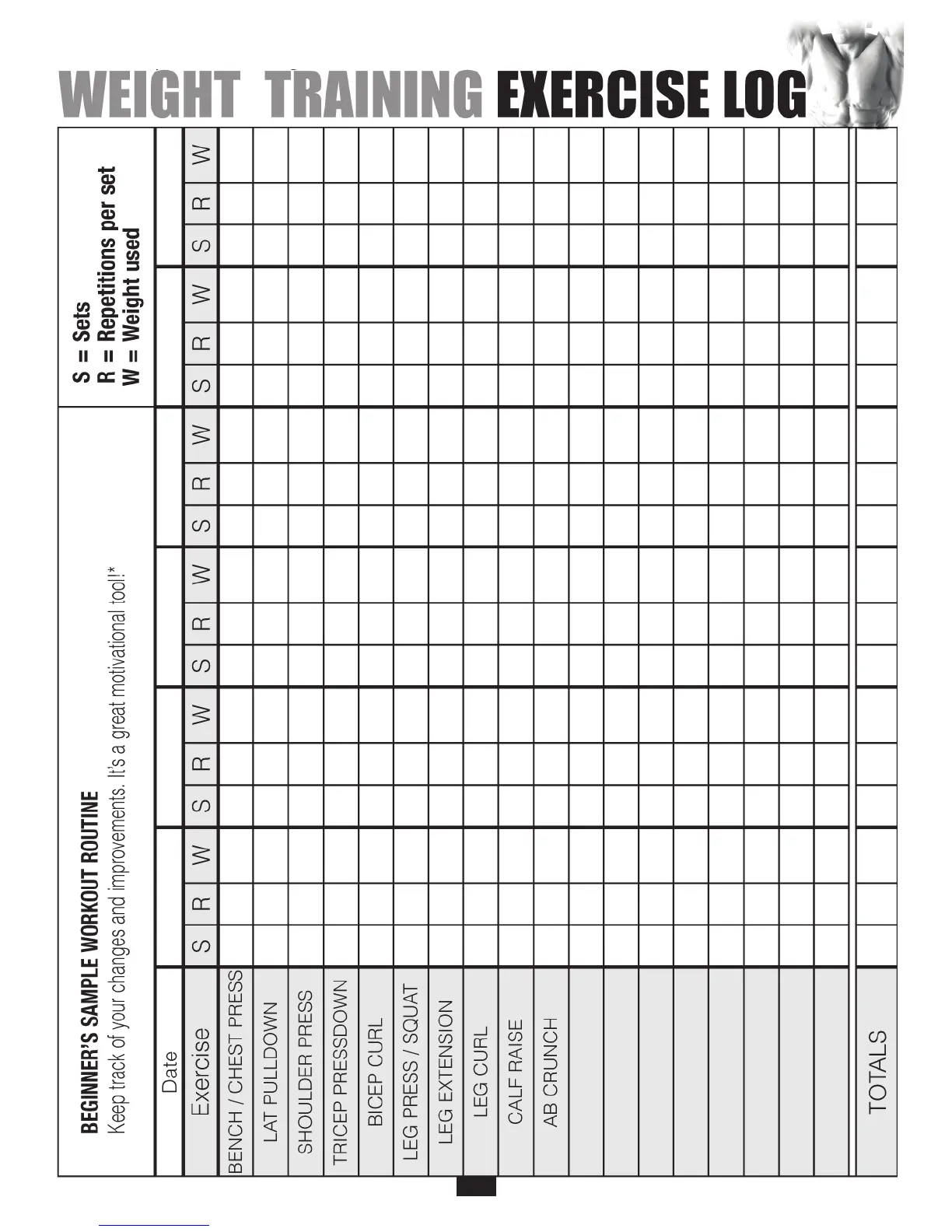 Make several copies of this page to keep track of your progress. You can print more copies of this page by going to http://www.bodysolid.com/support/docs.html