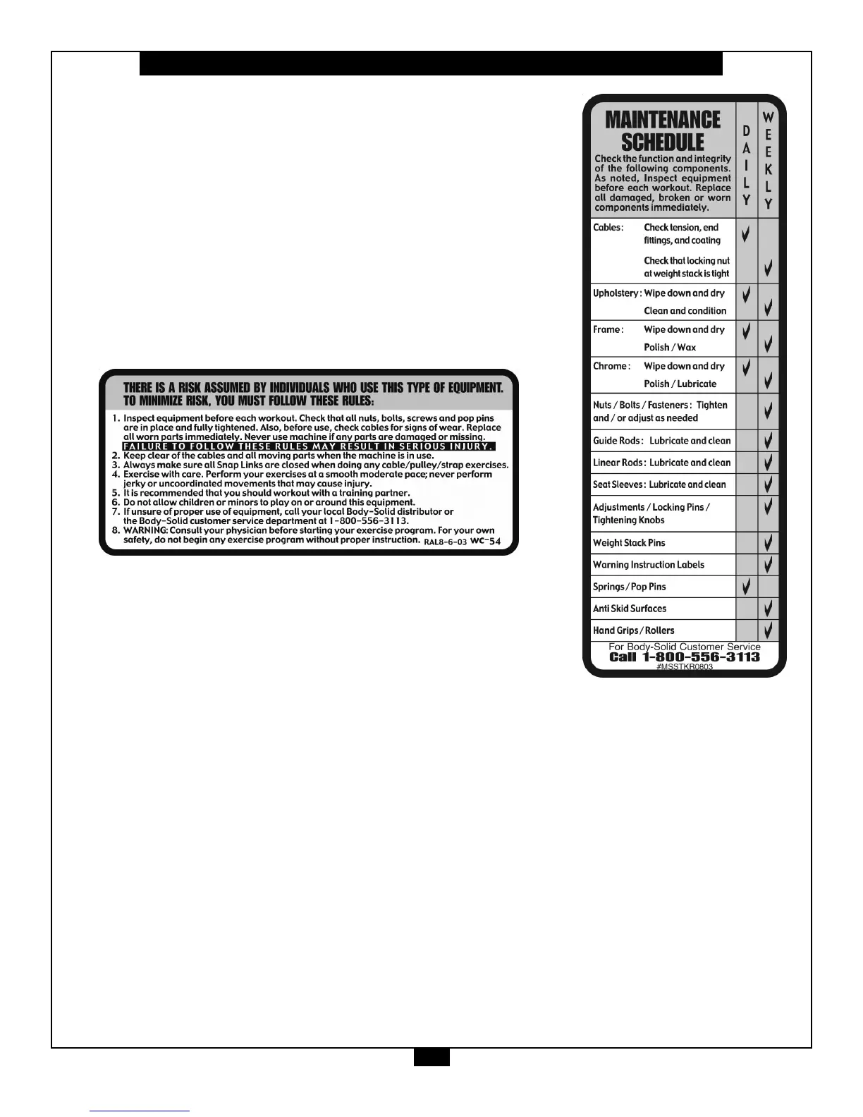 sure all warning labels are legible and intact. Replacement